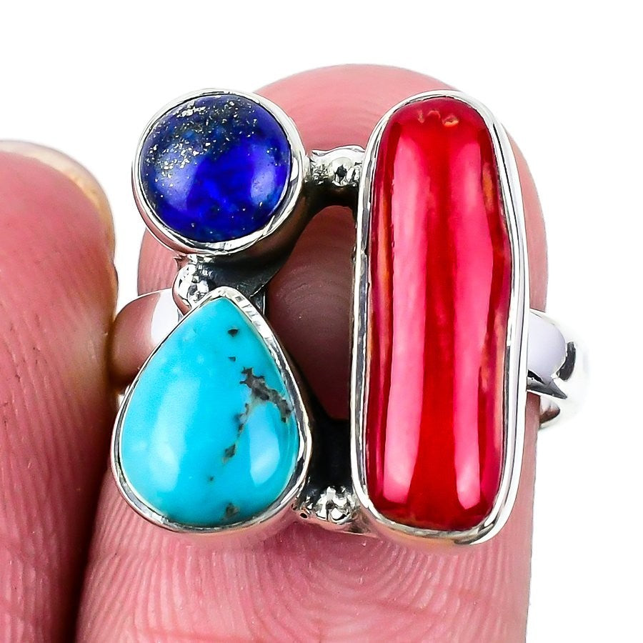 Red Bamboo Coral Gemstone 925 Solid Silver Wedding Cluster Ring Jewelry Size 6