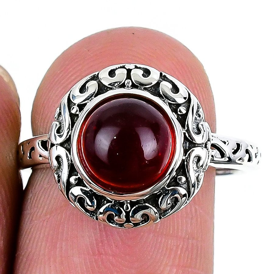 Red Carnelian Gemstone 925 Solid Silver Statement Ethnic Ring Jewelry Size 8.5