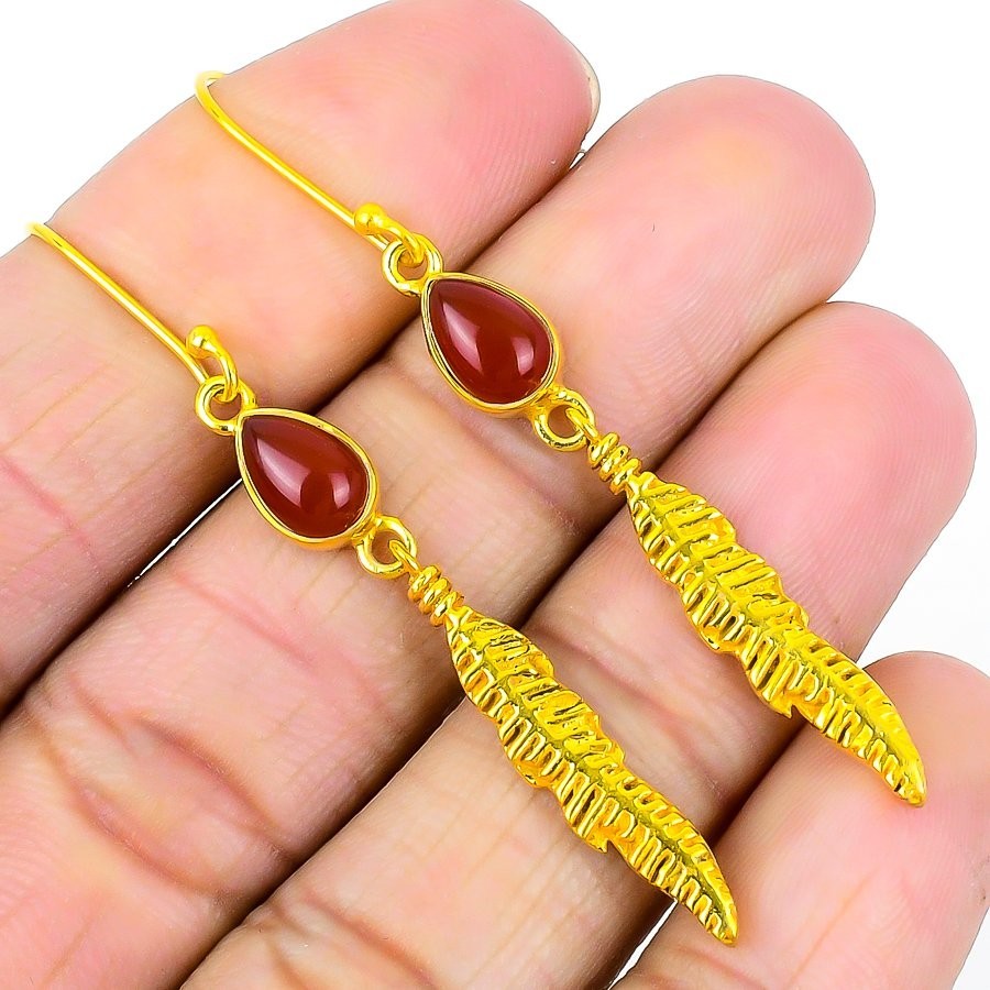 Red Carnelian Gemstone 925 Sterling Silver Mother Drop Elegant Earrings Jewelry