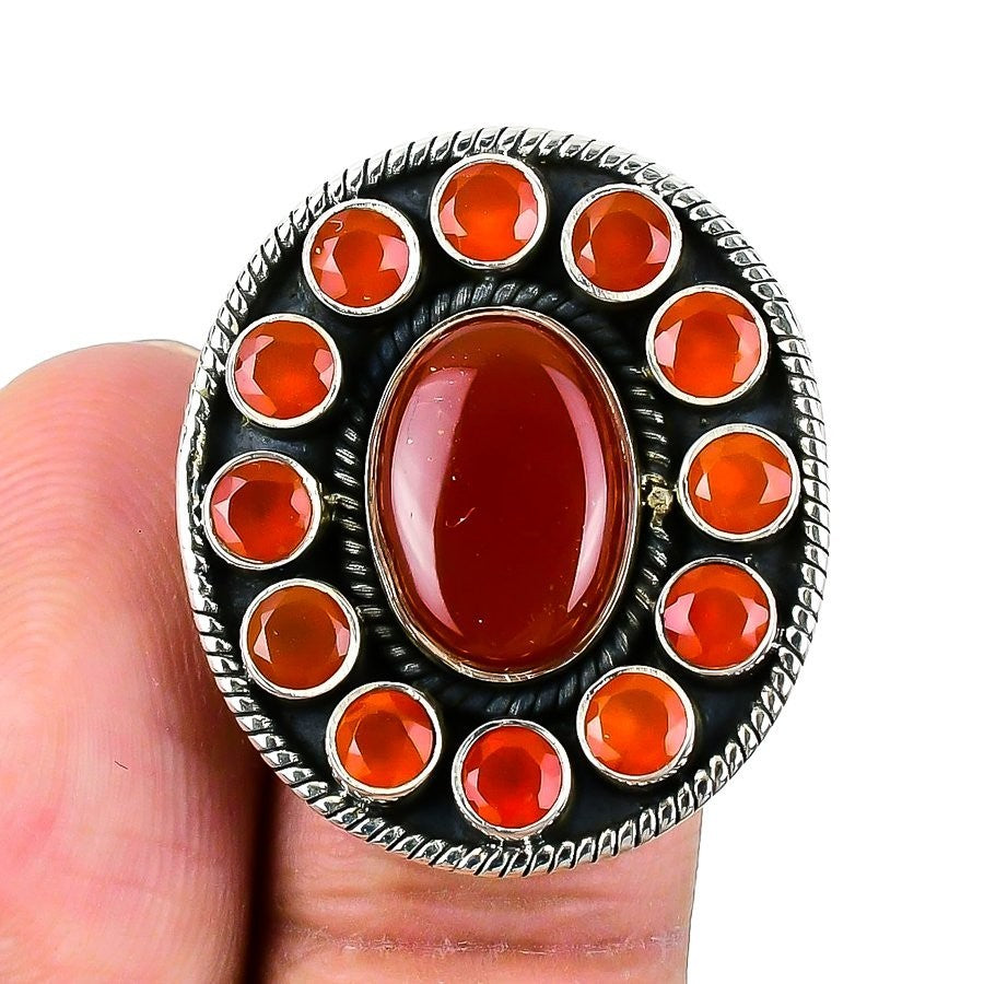 Red Carnelian Gemstone Sterling Silver Artisan Statement Ring Jewelry Size 8.5
