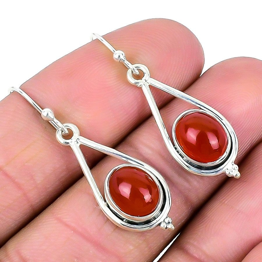 Elegant Red Carnelian Gemstone Sterling Silver Wife Drop in