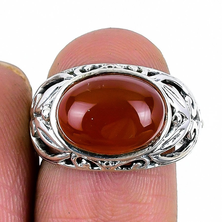 Red Carnelian Stone 925 Silver Wedding Statement Artisan Sisters Day Ring Size 7