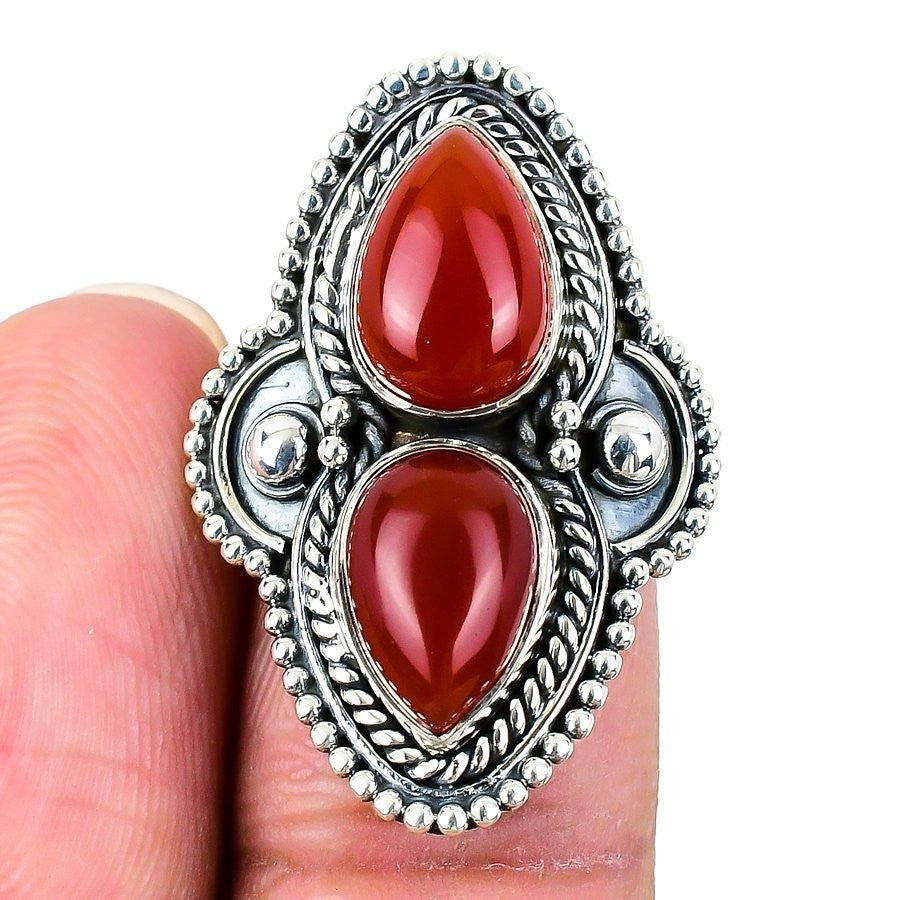 Red Carnelian Stone Sterling Silver Wife Statement Engagement Ring Jewelry US 6