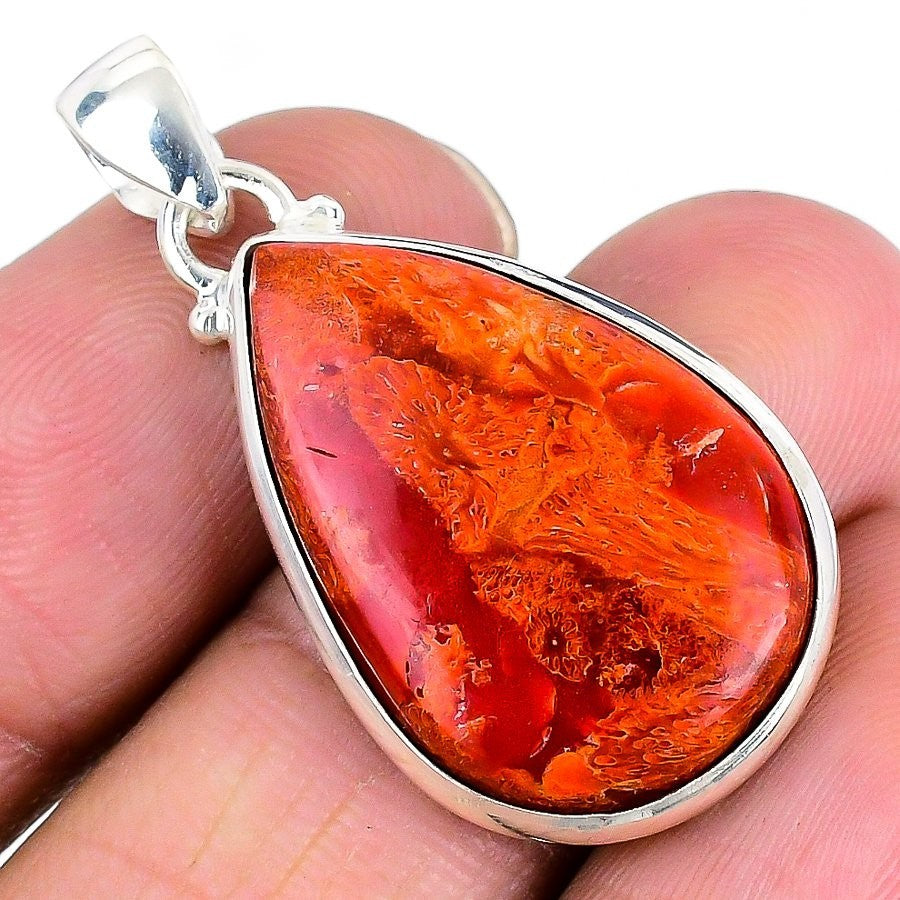 Red Coral Stone Wife Birthday Bezel Engagement New Pendant Solid Sterling Silver