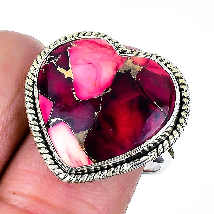 Red Spiny Oyster Heart Gemstone Solid Silver Statement Birthday Ring Size 8.5