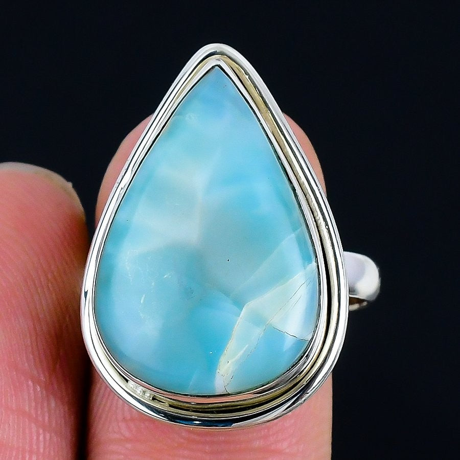 Republic Larimar Gemstone 925 Silver Wife Ethnic Statement Anniversary Ring US 8