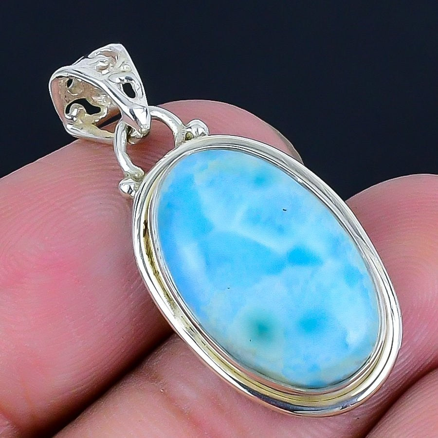 Republic Larimar Gemstone 925 Sterling Silver Channel Set Mother Wedding Pendant