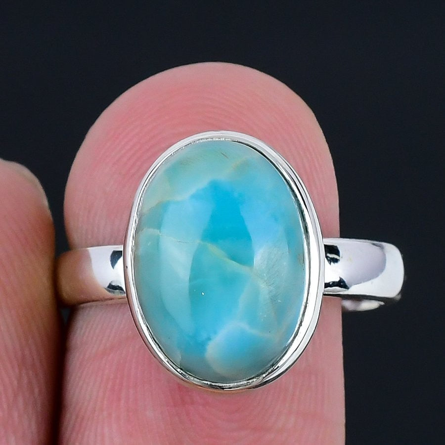 Republic Larimar Gemstone Art Deco Statement Ring Jewelry Sterling Silver US 8.5