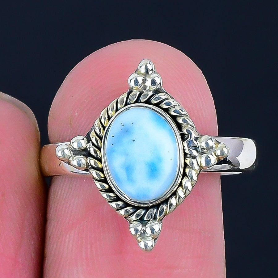 Republic Larimar Gemstone Cluster Daughters Day Ring Size 8.5 925 Solid Silver