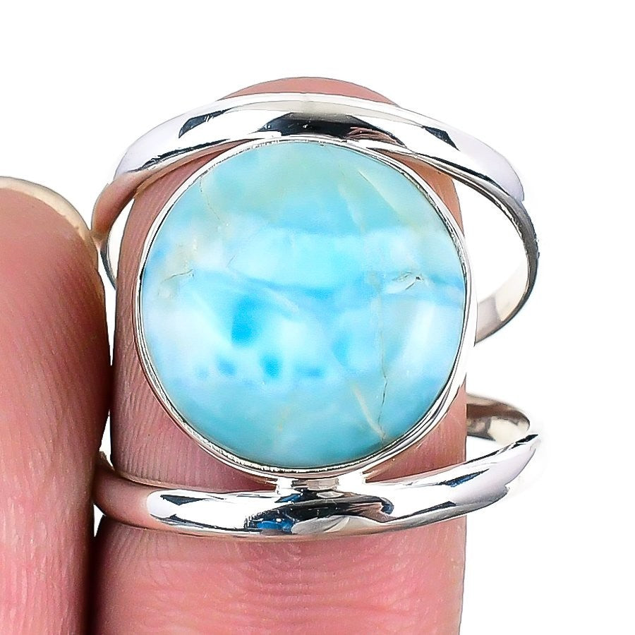 Republic Larimar Gemstone Solid Sterling Silver Statement New Ring Jewelry US 10