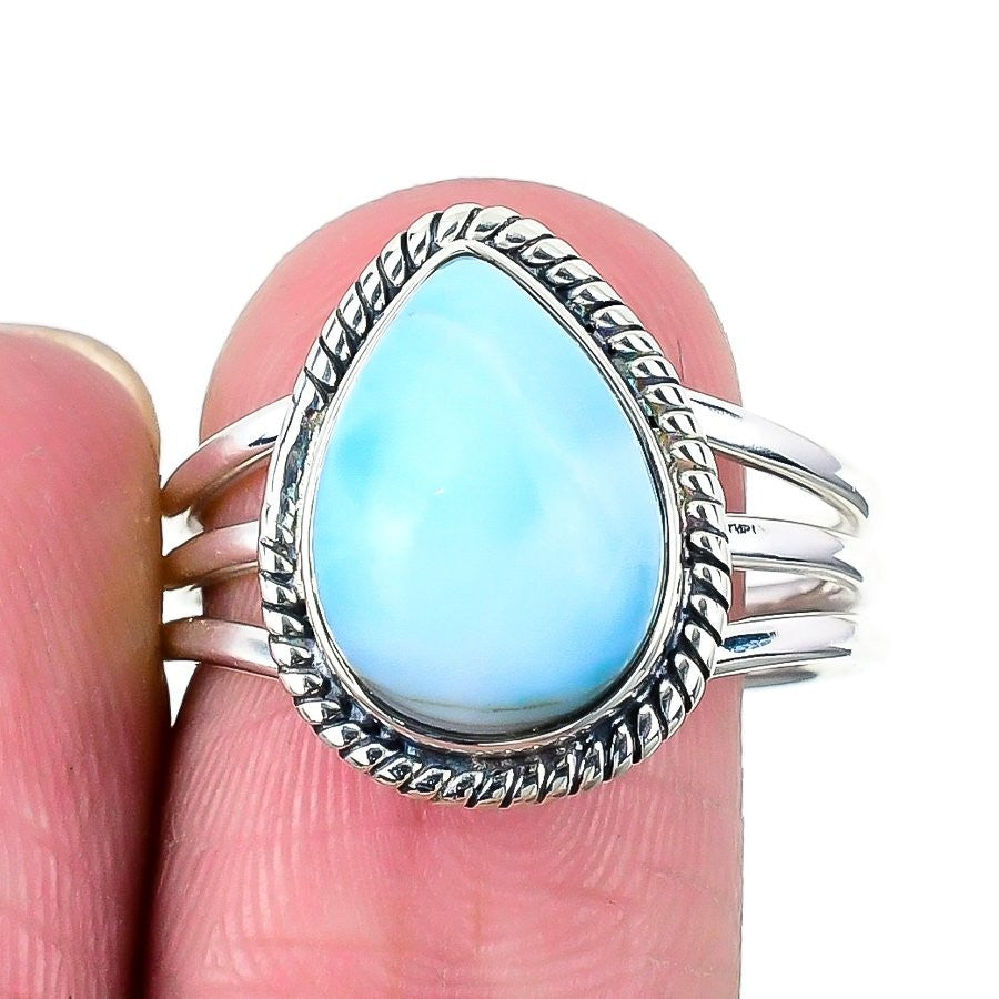 Republic Larimar Gemstone Sterling Silver Cluster Art Deco Ring Jewelry Size 9