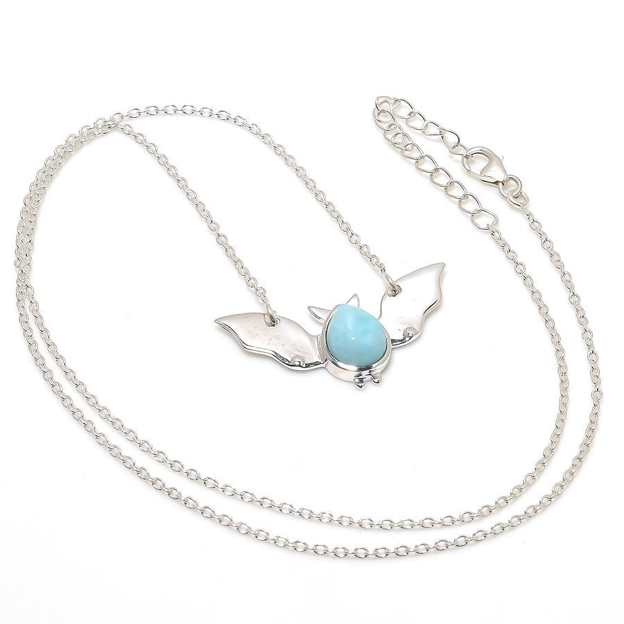 Republic Larimar Gemstone Wedding Chain Anniversary Necklace Jewelry 925 Silver