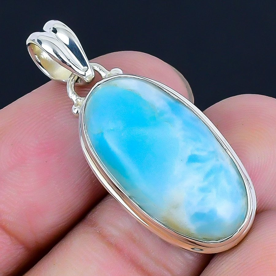 Republic Larimar Stone 925 Solid Silver Channel Set Birthday New Pendant Jewelry