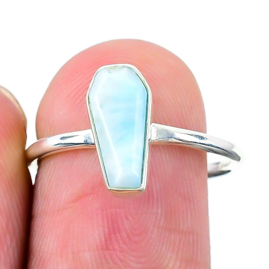 Republic Larimar Stone 925 Solid Silver Ethnic New Statement Ring Jewelry Size 8