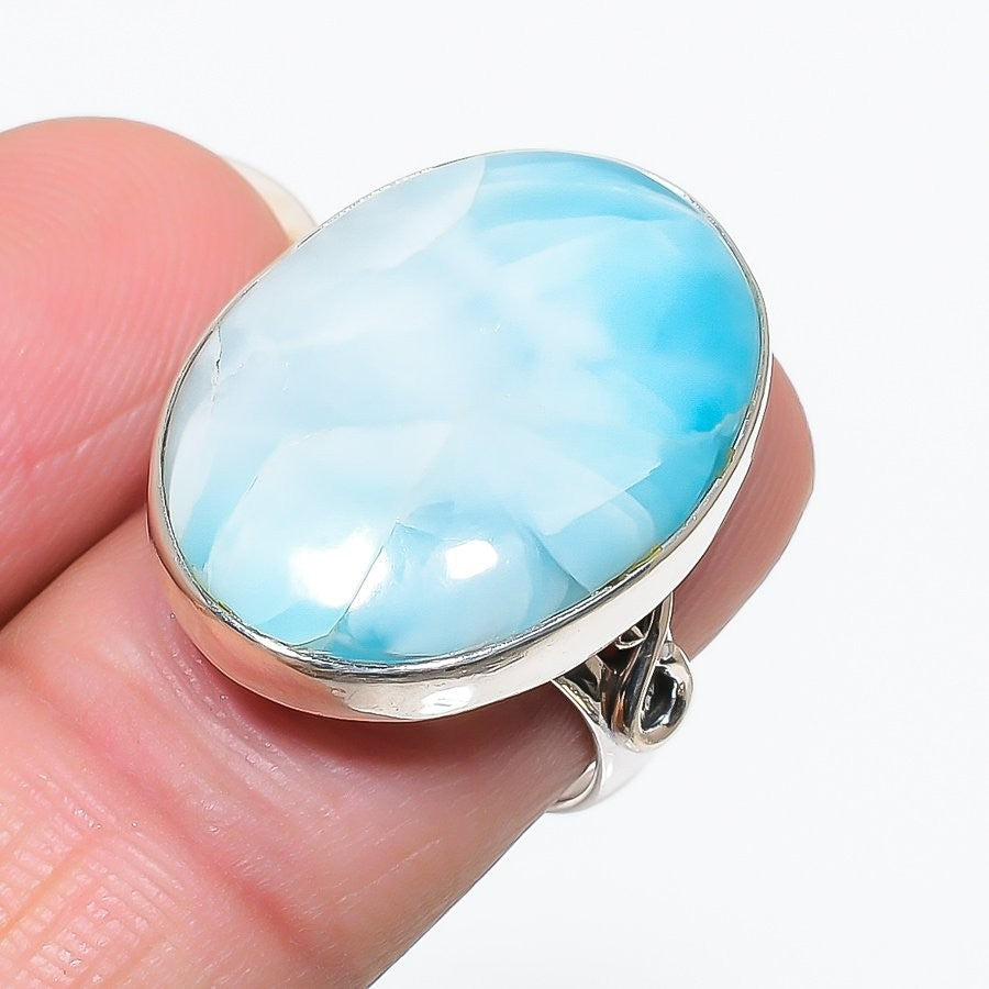 Republic Larimar Stone 925 Solid Silver Sister Statement New Ring Jewelry US 7
