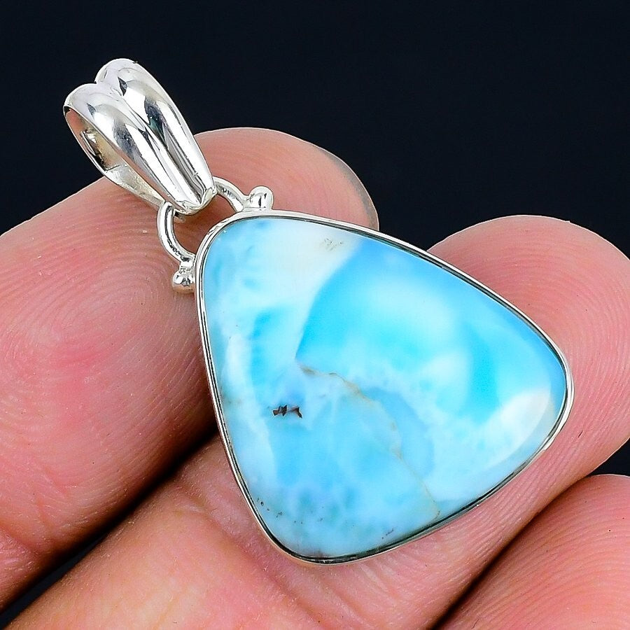 Republic Larimar Stone 925 Solid Silver Wedding Bezel Birthday Pendant Jewelry