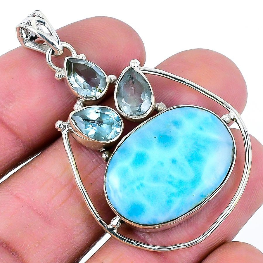 Republic Larimar Stone 925 Solid Silver Wedding Birthday Anniversary New Pendant