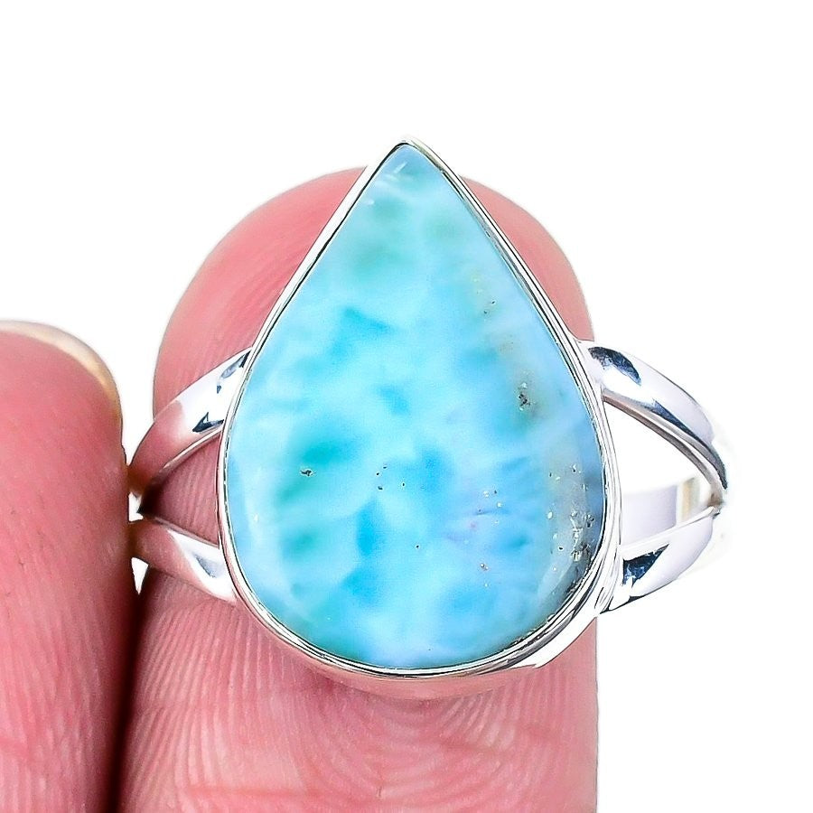 Republic Larimar Stone 925 Sterling Silver Cluster Artisan Ring Jewelry Size 10