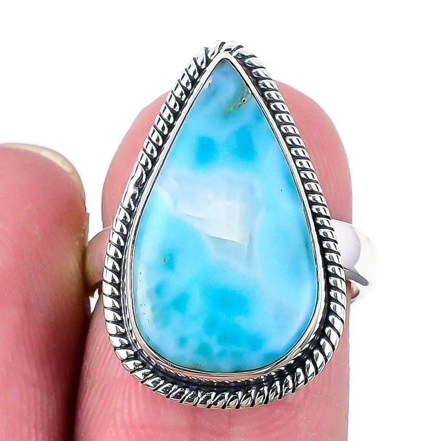 Republic Larimar Stone 925 Sterling Silver Daughter Cluster Art Deco Ring Size 6