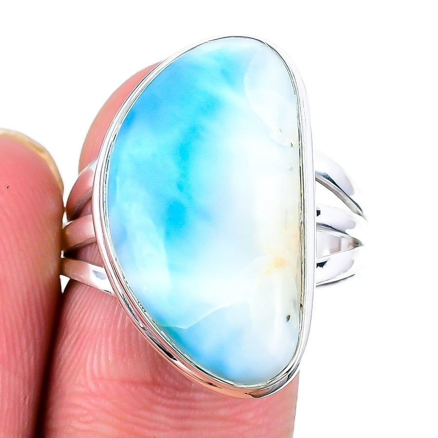 Republic Larimar Stone 925 Sterling Silver Statement Handmade Ring Jewelry US 10