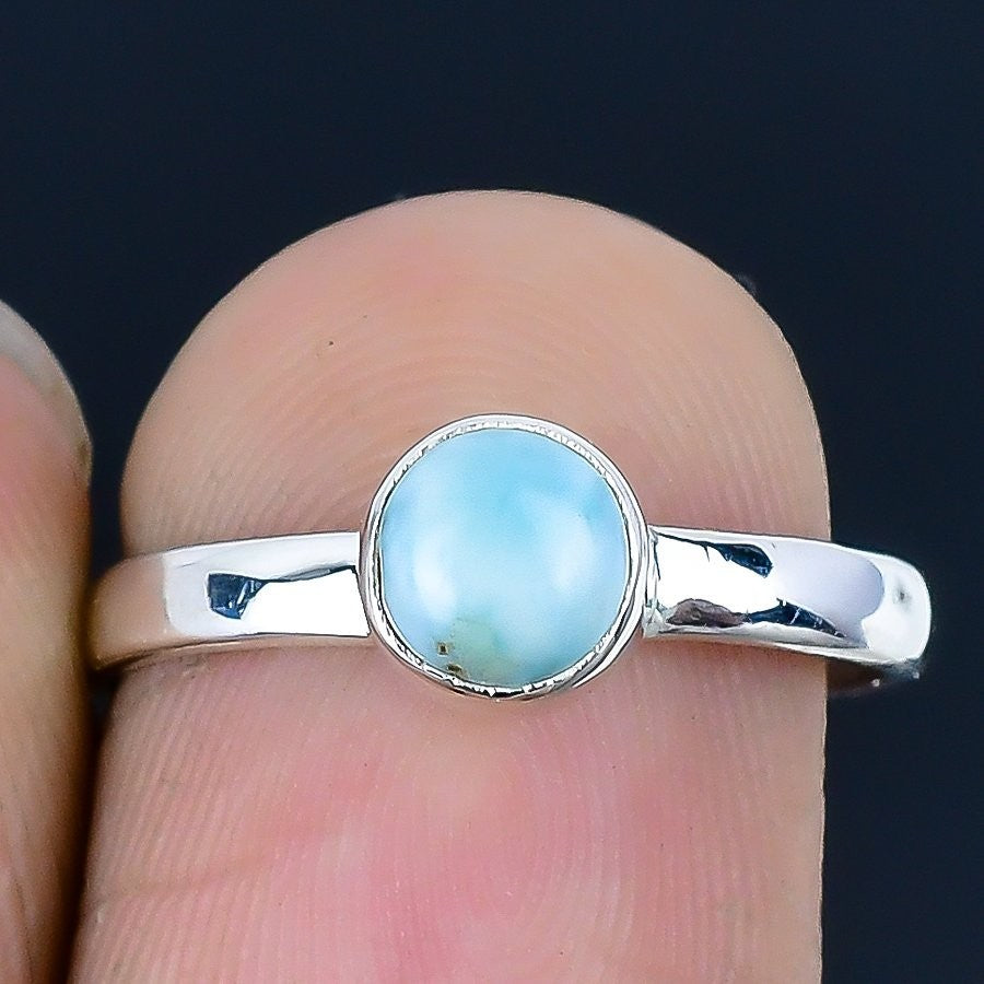 Republic Larimar Stone 925 Sterling Silver Unique Statement Mother Ring Jewelry