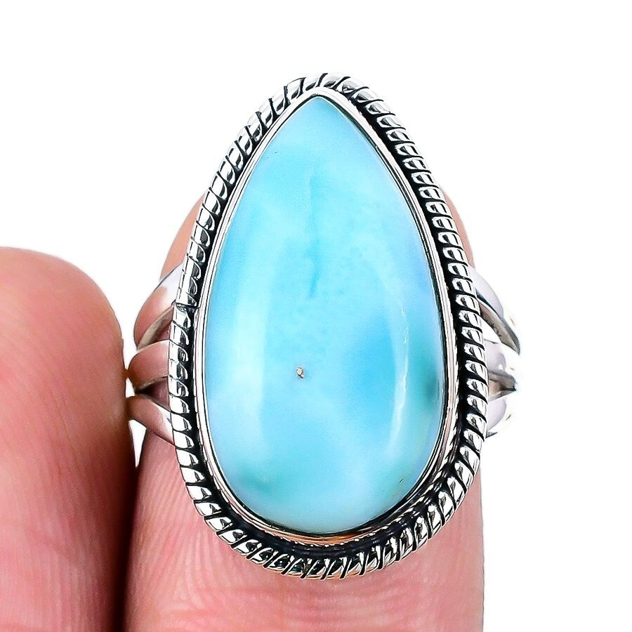 Republic Larimar Stone Ethnic Statement Mother Ring Solid Sterling Silver US 8