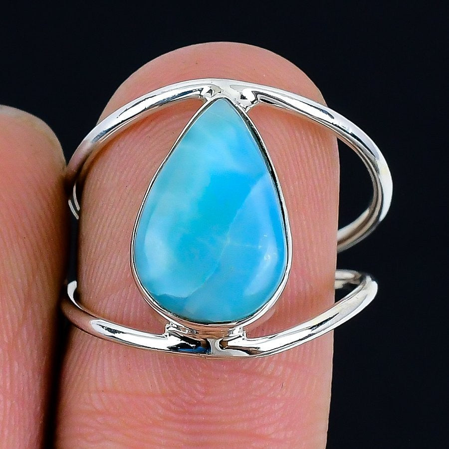 Republic Larimar Stone Solid Silver Art Deco Statement Anniversary Ring Size 8