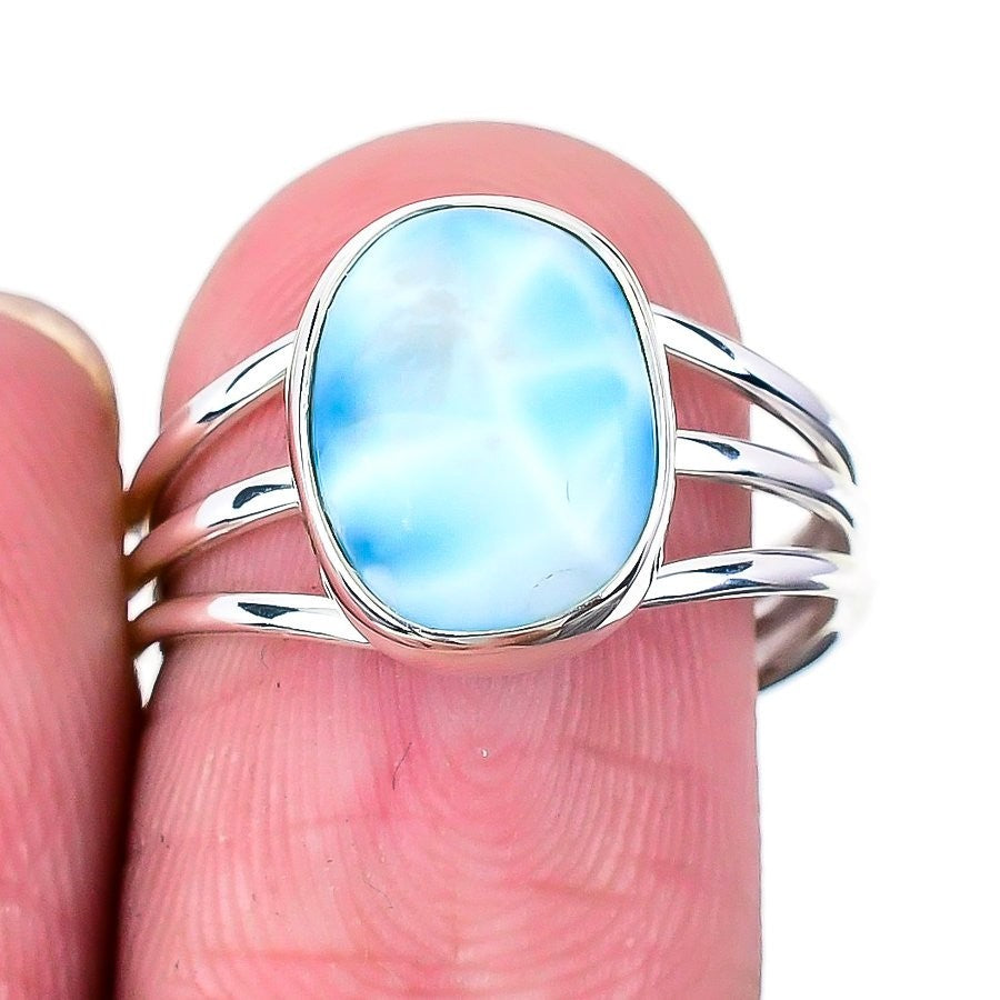 Republic Larimar Stone Solid Silver Cluster Unique Daughter Gift Ring Jewelry