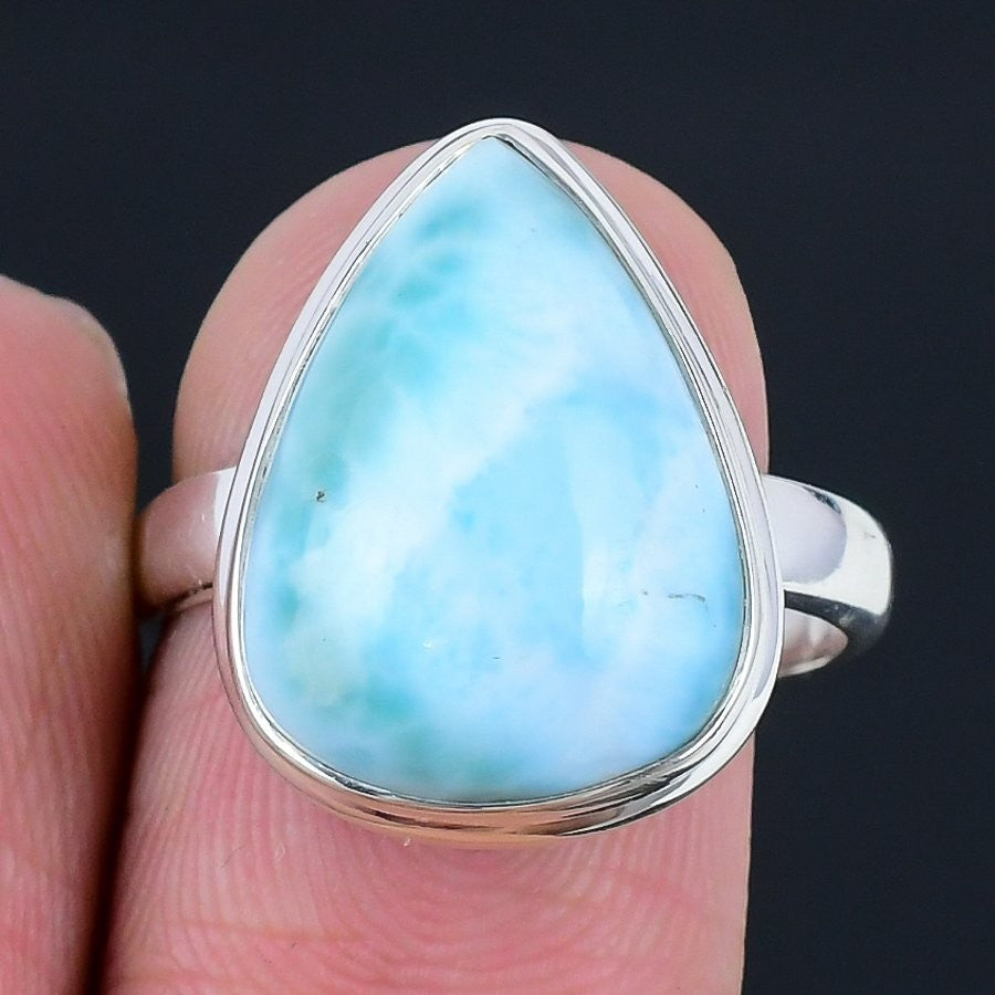 Republic Larimar Stone Solid Silver Engagement Boho Statement Wife Ring Size 9
