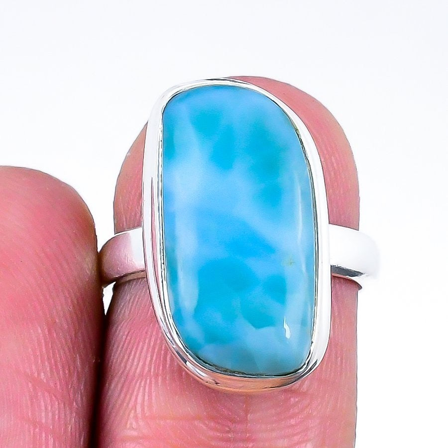 Republic Larimar Stone Solid Sterling Silver Elegant Band Ring Jewelry Size 6