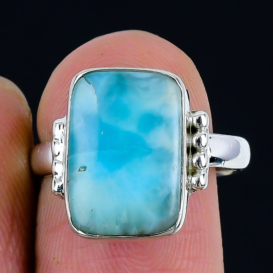 Republic Larimar Stone Solid Sterling Silver Statement Trendy Ring Jewelry US 8
