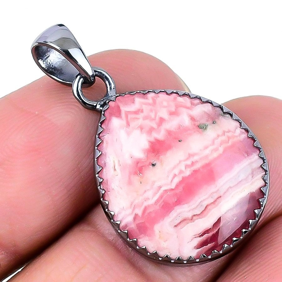 Rhodochrosite Stone 925 Silver Channel Set Sister Friendship Day Pendant Jewelry