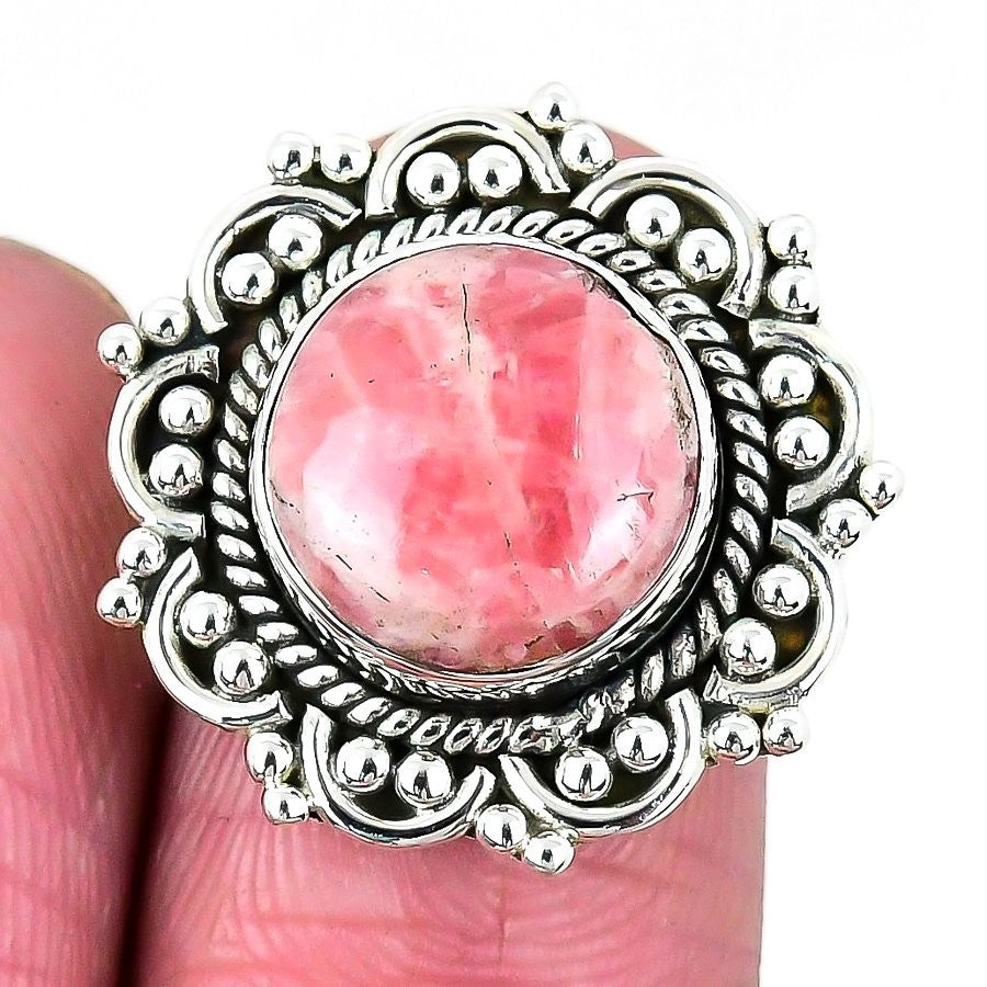 Rhodochrosite Stone Solid Silver Cluster Mother Channel Set Ring Jewelry Size 7
