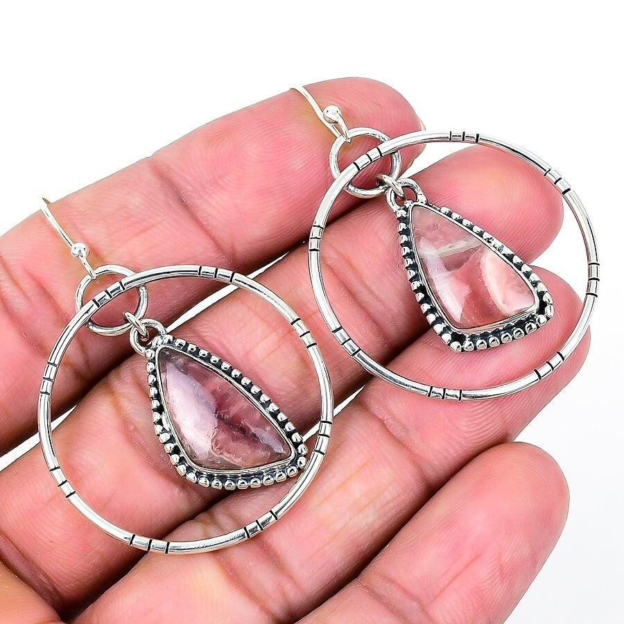 Elegant Rhodochrosite Stone Solid Sterling Silver Dangle Dro