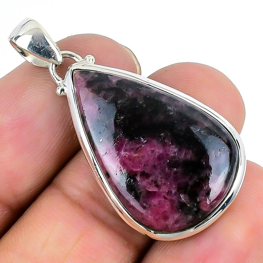 Rhodonite Gemstone Solid Sterling Silver Sister Ethnic Heart Chakra Boho Pendant
