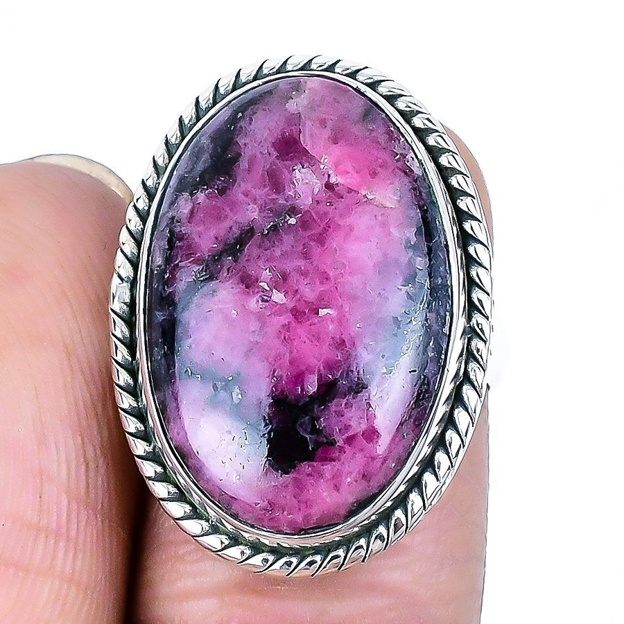 Rhodonite Stone 925 Solid Silver New Statement Boho Wedding Handmade Ring Size 6