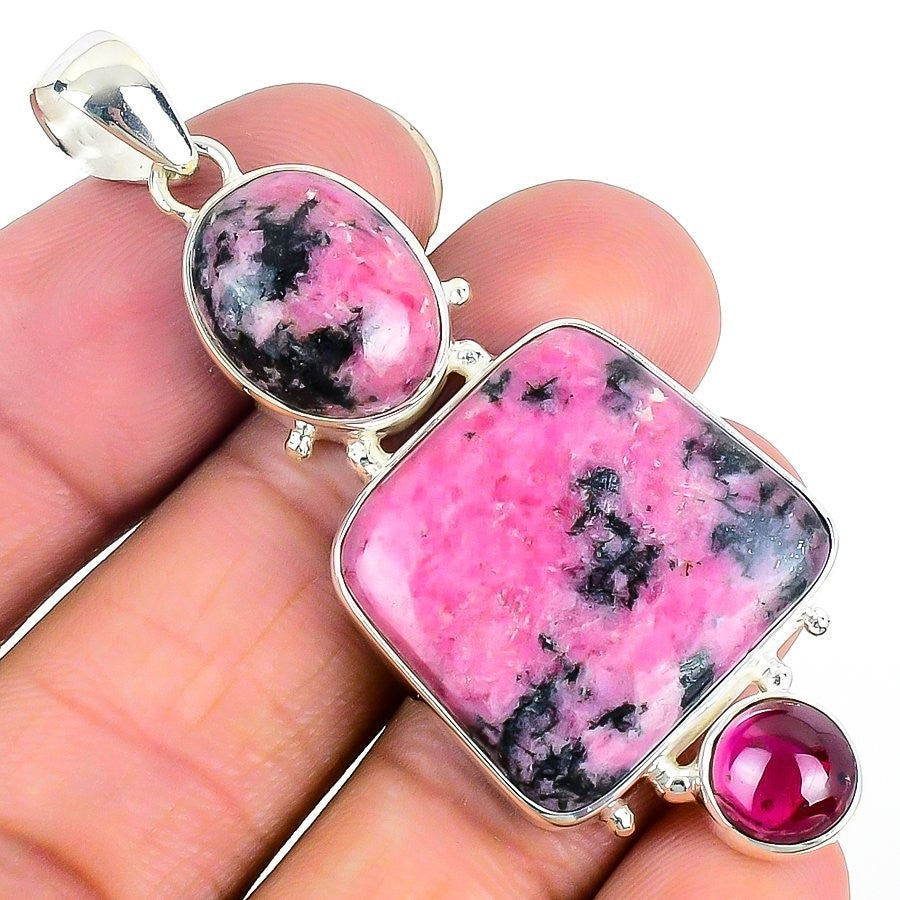 Rhodonite Stone Sterling Silver Artisan Anniversary Boho Birthday Bezel Pendant