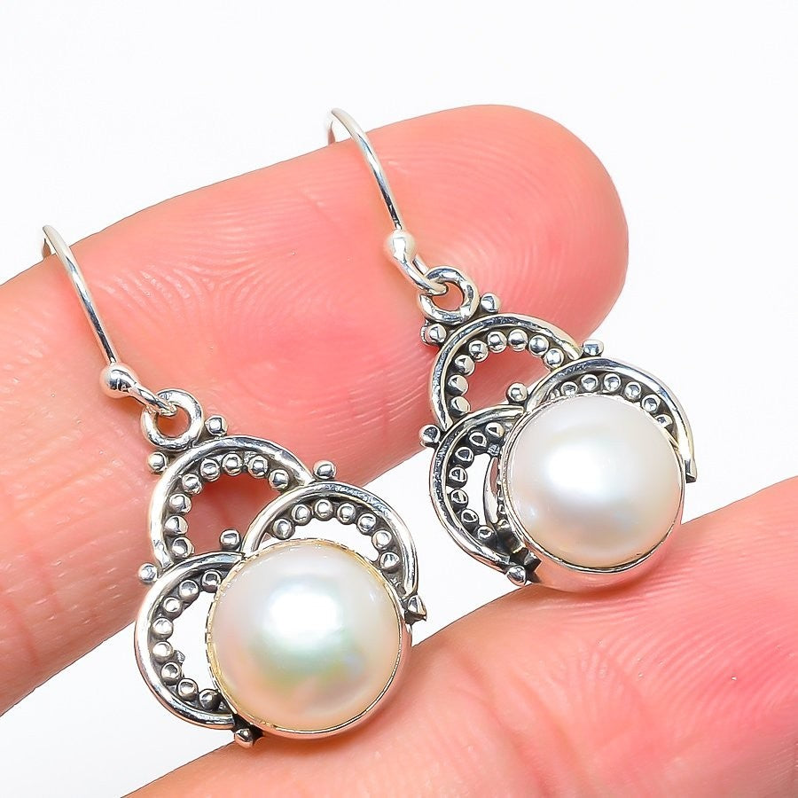 River Pearl Stone Solid Sterling Silver Wedding Drop Anniversary Hook Earrings