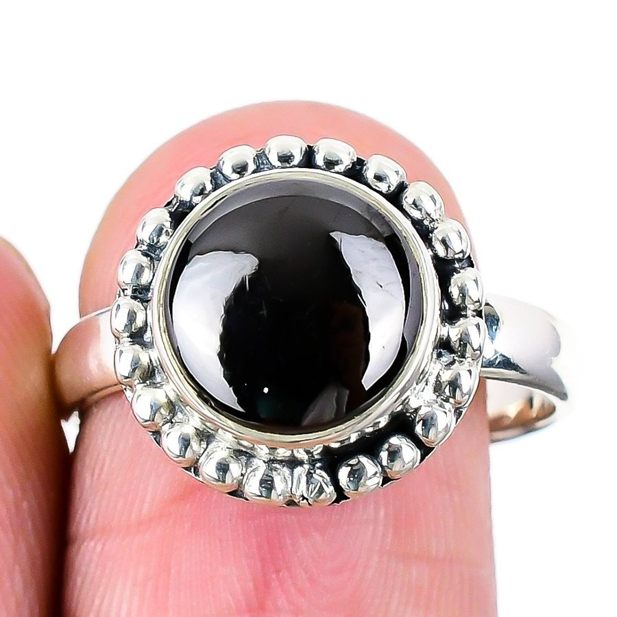 Root Chakra Black Onyx Gemstone Solid Silver Daughters Day Statement Ring Size 9
