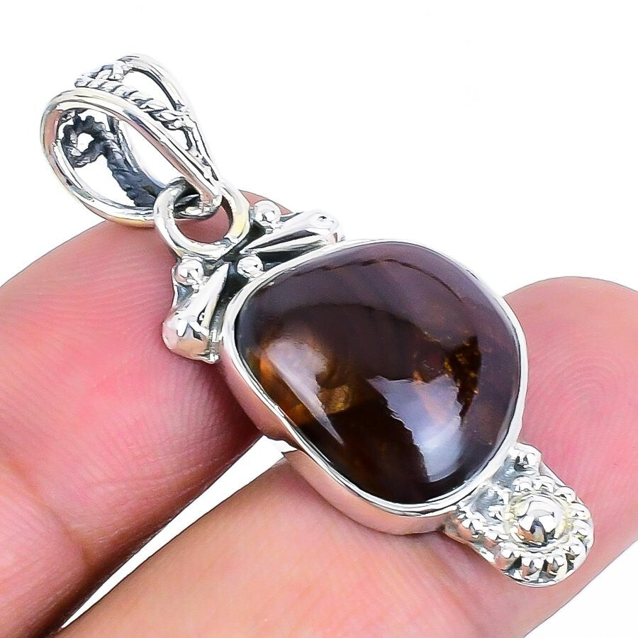 Root Chakra Mexican Fire Agate Stone Sterling Silver Wife Artisan Ethnic Pendant