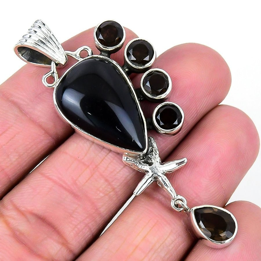 Root Chakra Natural Black Onyx Sister Channel Set Wedding New Pendant 925 Silver