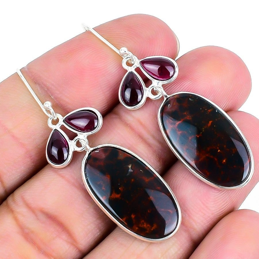 Root Chakra Natural Blood Stone 925 Silver Anniversary Wife Drop Dangle Earrings