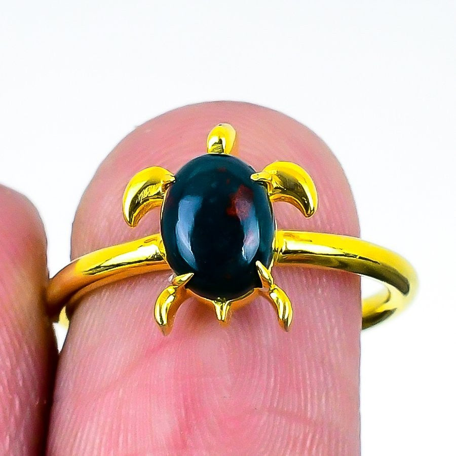 Root Chakra Natural Bloodstone Solid Silver Boho Band Daughter Ring Jewelry US 7