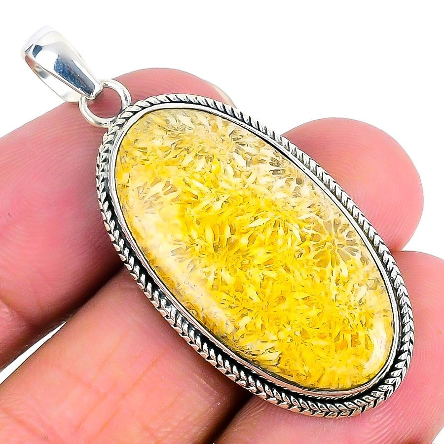 Root Chakra Natural Fossil Coral Solid Silver Bezel Wedding Wife Pendant Jewelry