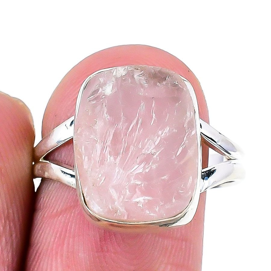 Rose Quartz Drusy Gemstone 925 Solid Silver Unique Statement Elegant Ethnic Ring