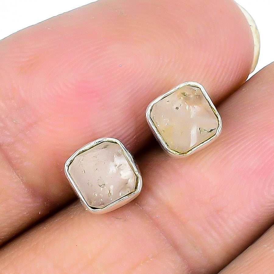 Rose Quartz Druzy Gemstone Solid Silver Leverback Wedding Stud Earrings Jewelry