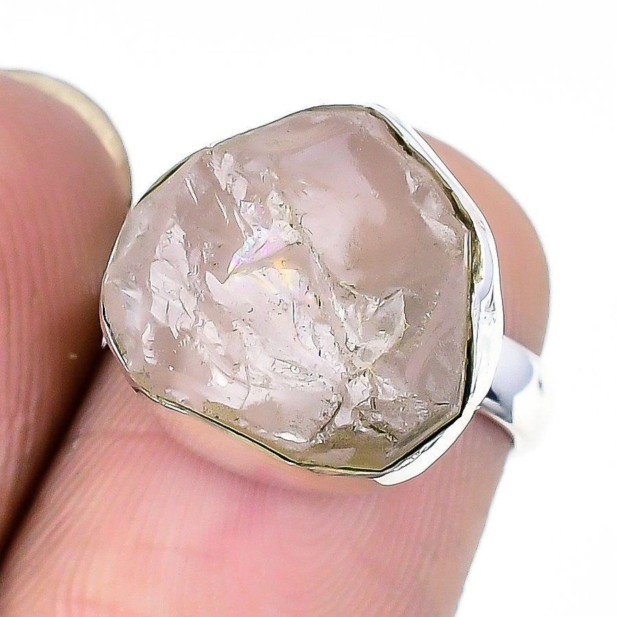 Rose Quartz Druzy Gemstone Solid Sterling Silver Mother Statement Ring Size 6