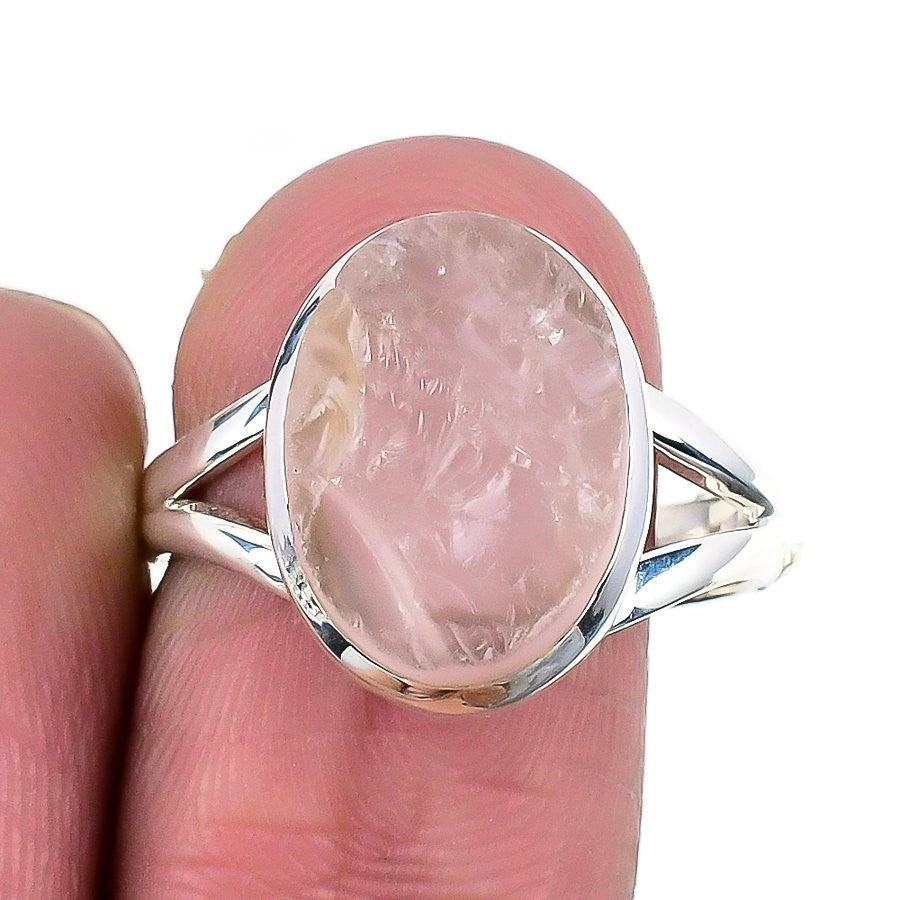 Rose Quartz Druzy Stone 925 Silver Daughters Day Statement Sister Ethnic Ring