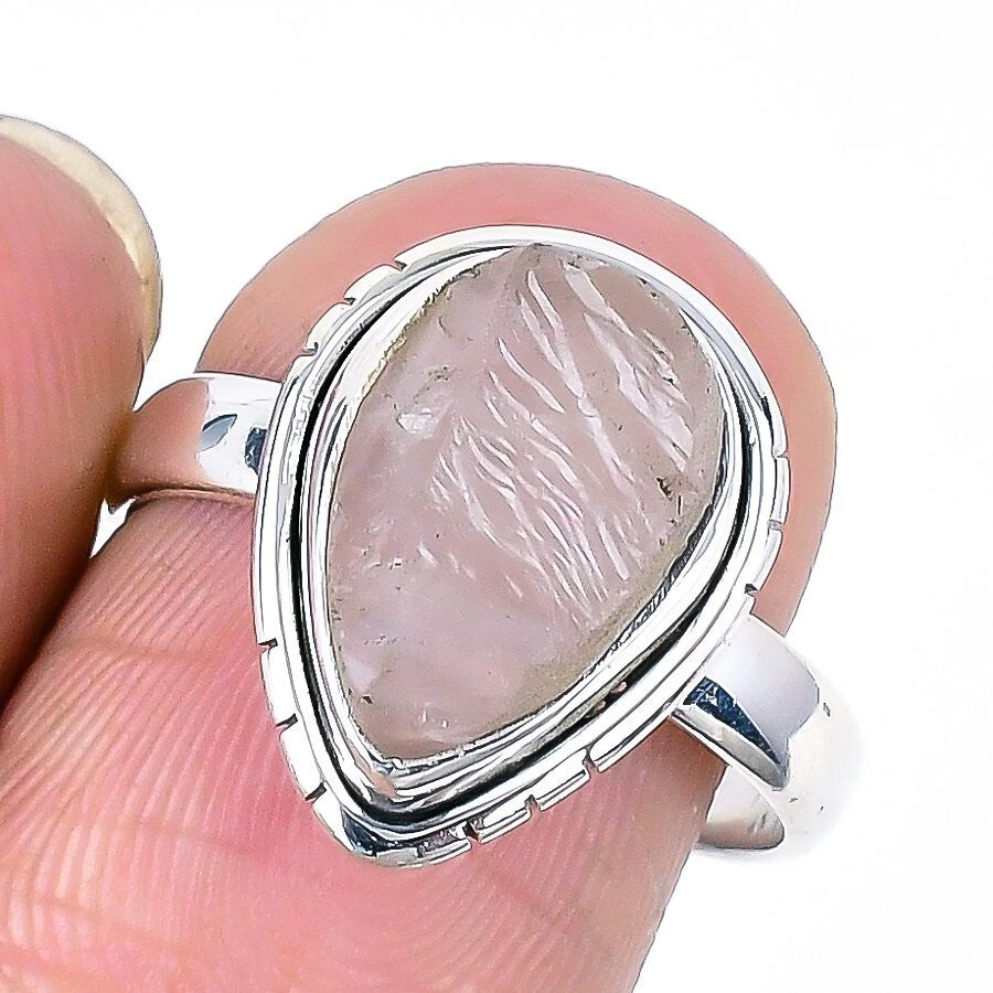 Rose Quartz Druzy Stone 925 Silver Statement Easter Gift Ethnic New Ring Jewelry