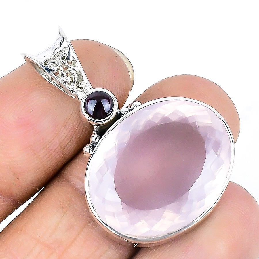 Rose Quartz Face Gemstone Solid Silver Anniversary Unique Ethnic Pendant Jewelry